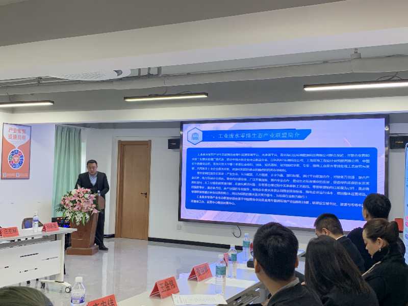 会议初始,由我公司叶松总经理主持会议,宣布会议正式开始。首先,由金海牛平台创始人江树国总经理为本次会议致词,讲解了金海牛平台的运营模式,工业废水零排产业生态联盟中心深入借鉴了金海牛平台的先进经验,近期也取得了长足的发展。